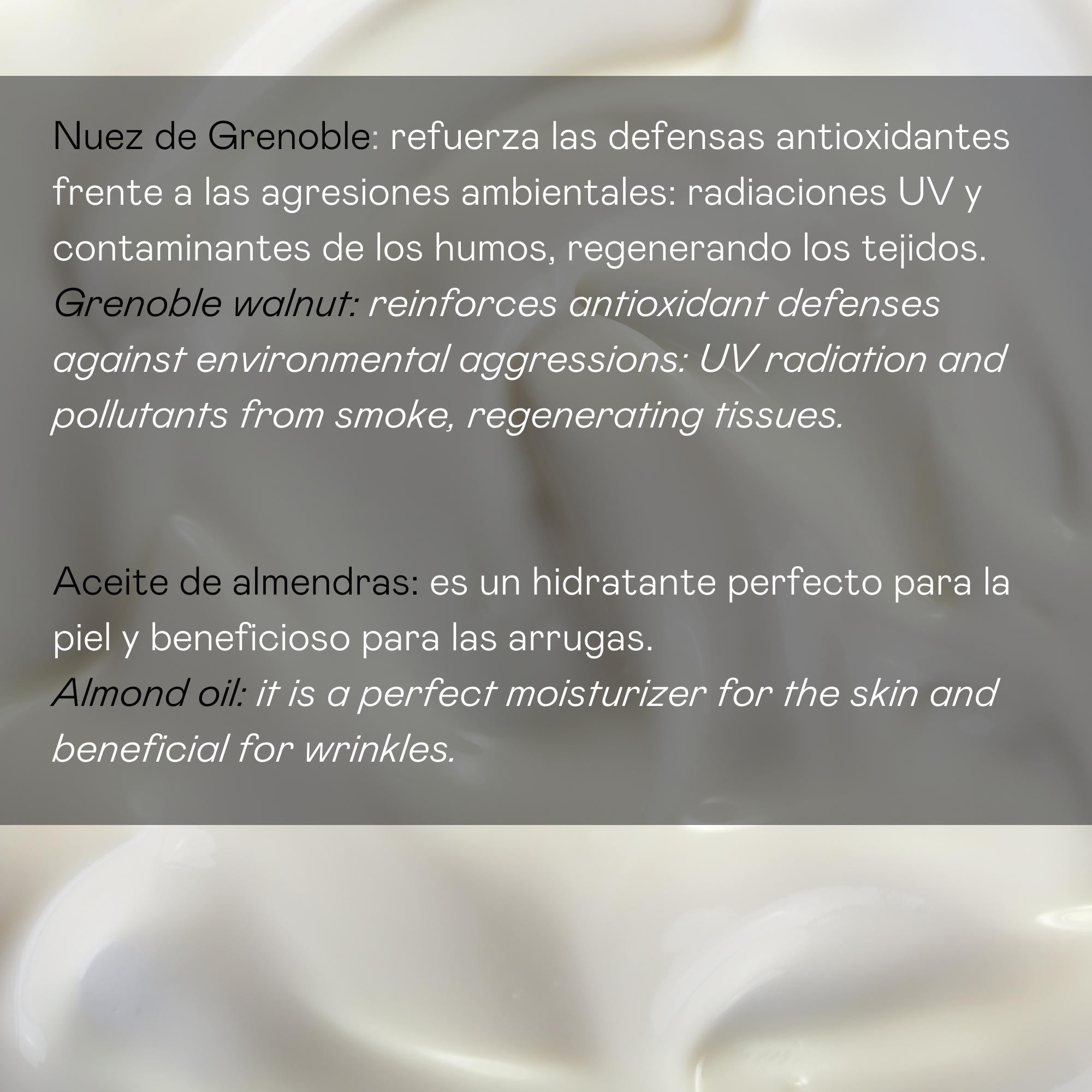 Crema facial Anti-edad, con nuez de Grenoble y protección solar.