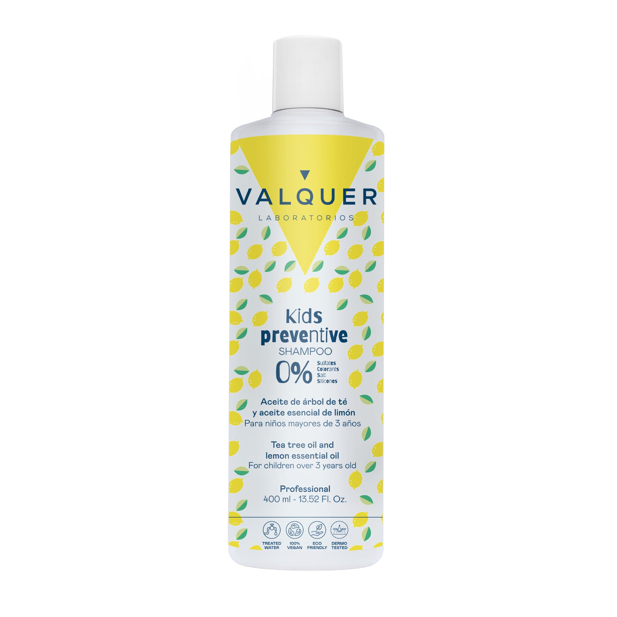Cuidada combinación de tensioactivos suaves, integrados en una fórmula delicada con aceite árbol de Té y aceite esencial de limón, exclusiva para el cuidado preventivo del cabello de niños mayores de tres años.
