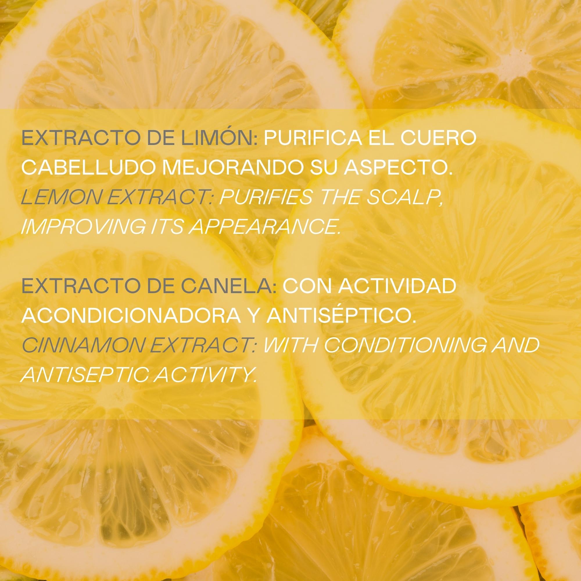 - El extracto de limón es un ingrediente natural que preserva el cabello de los procesos oxidativos. Es por esto que se recomienda en las formulaciones de productos cosméticos destinados también a purificar el cuero cabelludo, calmando y mejorando el aspecto del pelo. Además, destaca su actividad anti-caspa y es un excelente fijador del cabello, sin que éste pierda su textura natural.