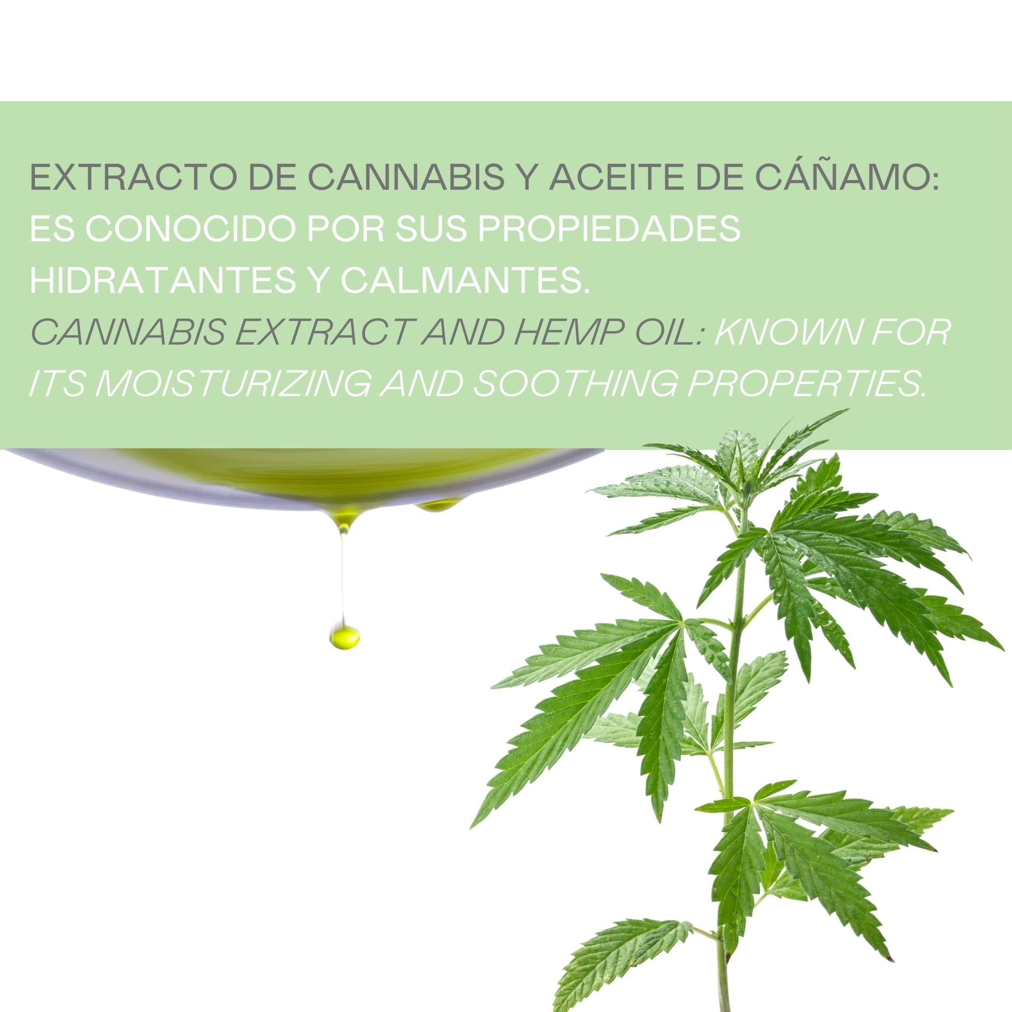 Este champú sólido hidratante y calmante, contiene como ingrediente principal el aceite de cáñamo. Se extrae de semillas de cáñamo (que es una variedad de planta de Cannabis sativa . No contiene THC, por tanto no tiene propiedades psicoactivas)