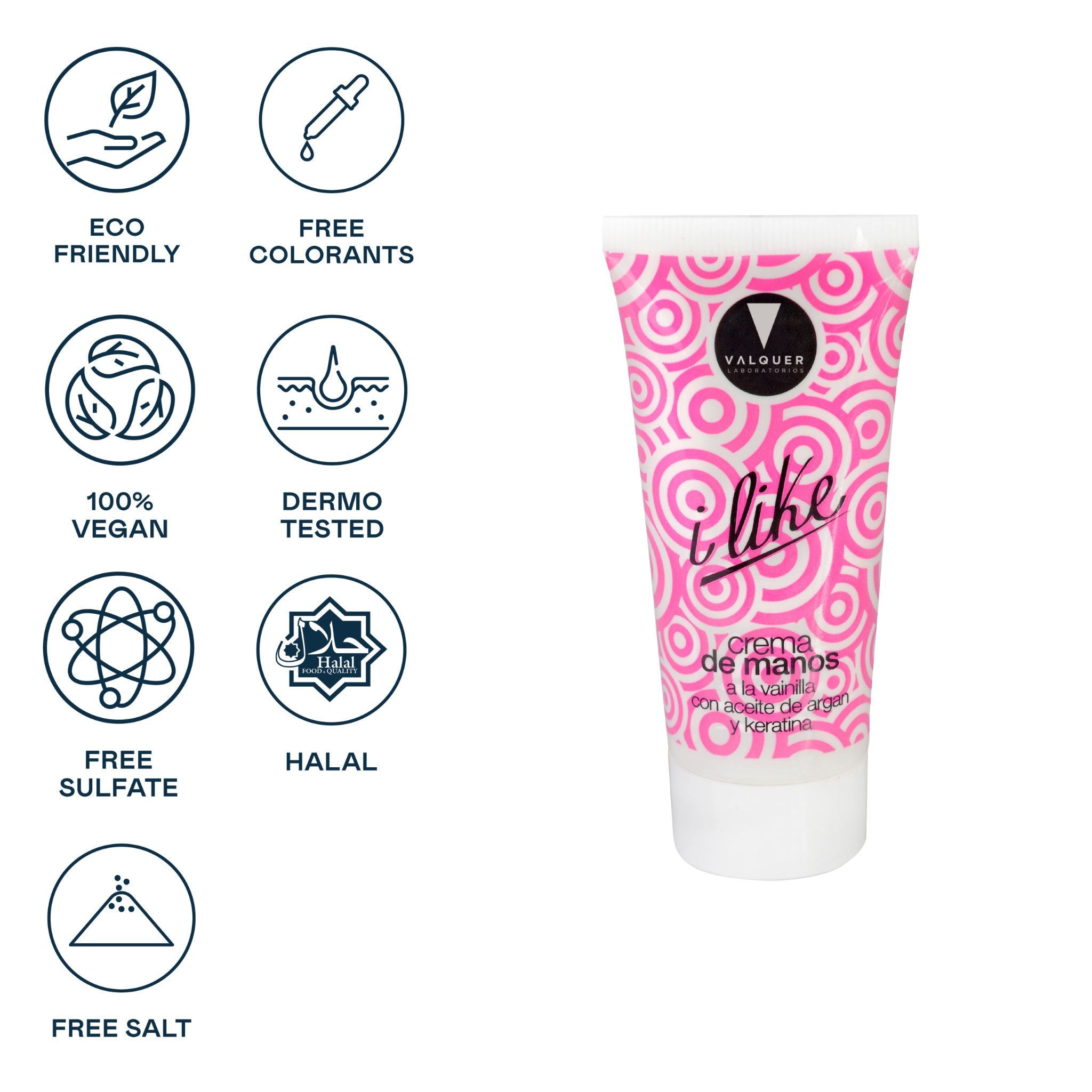 Crema de manos 2.0 con aceite de argán y keratina y sutil toque de vainilla. Con certificación Halal.