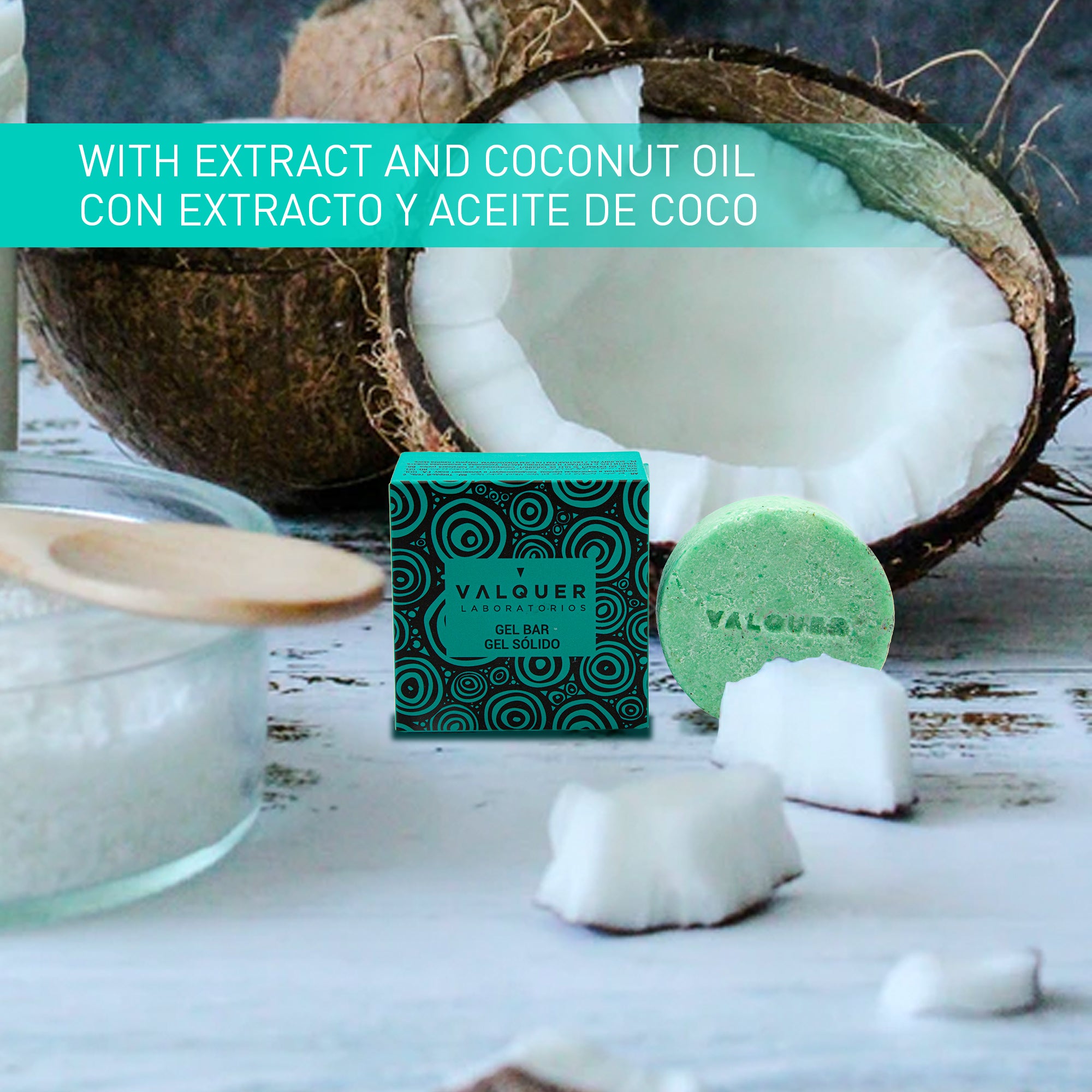 Gel de baño de coco, el extracto y aceite de coco son los ingredientes principales de este gel corporal sólido para acondicionar y reparar la piel.