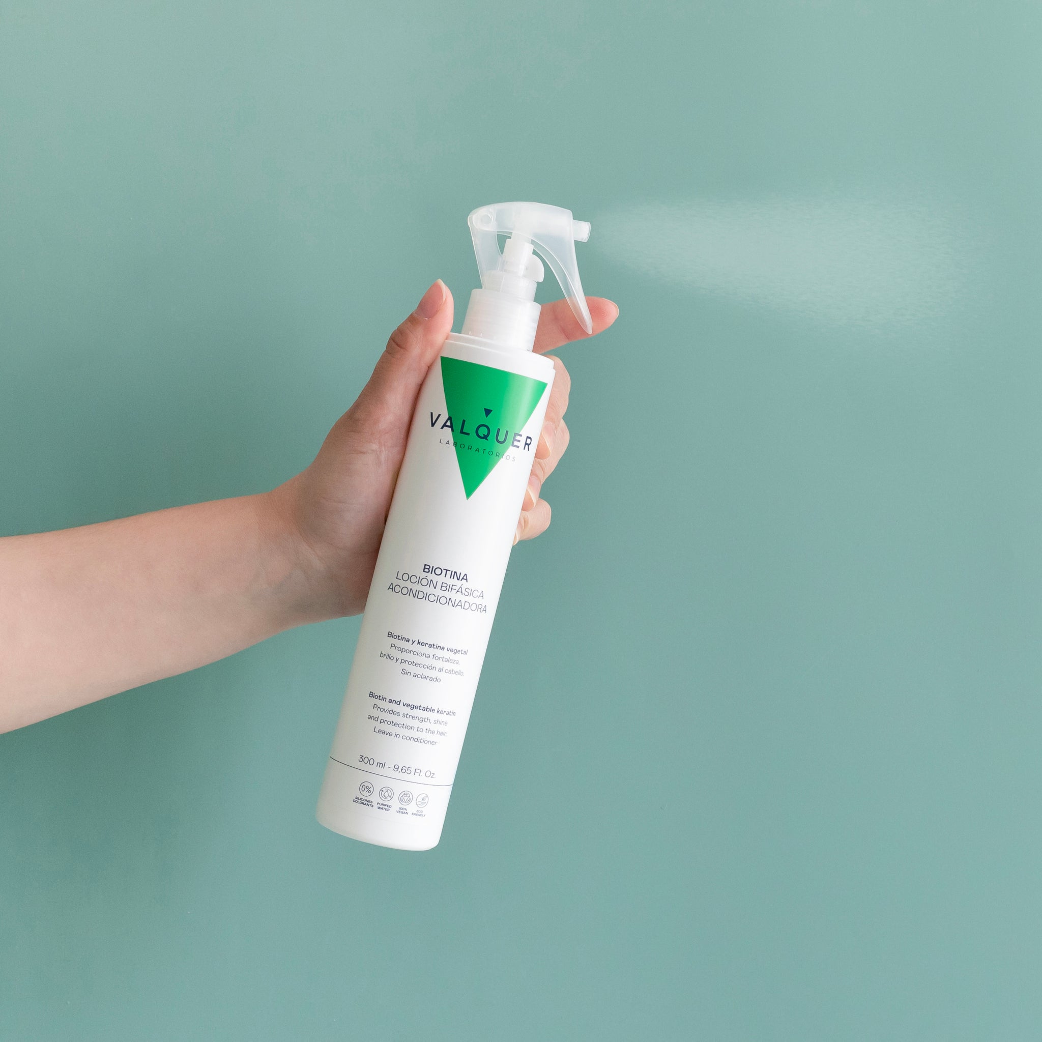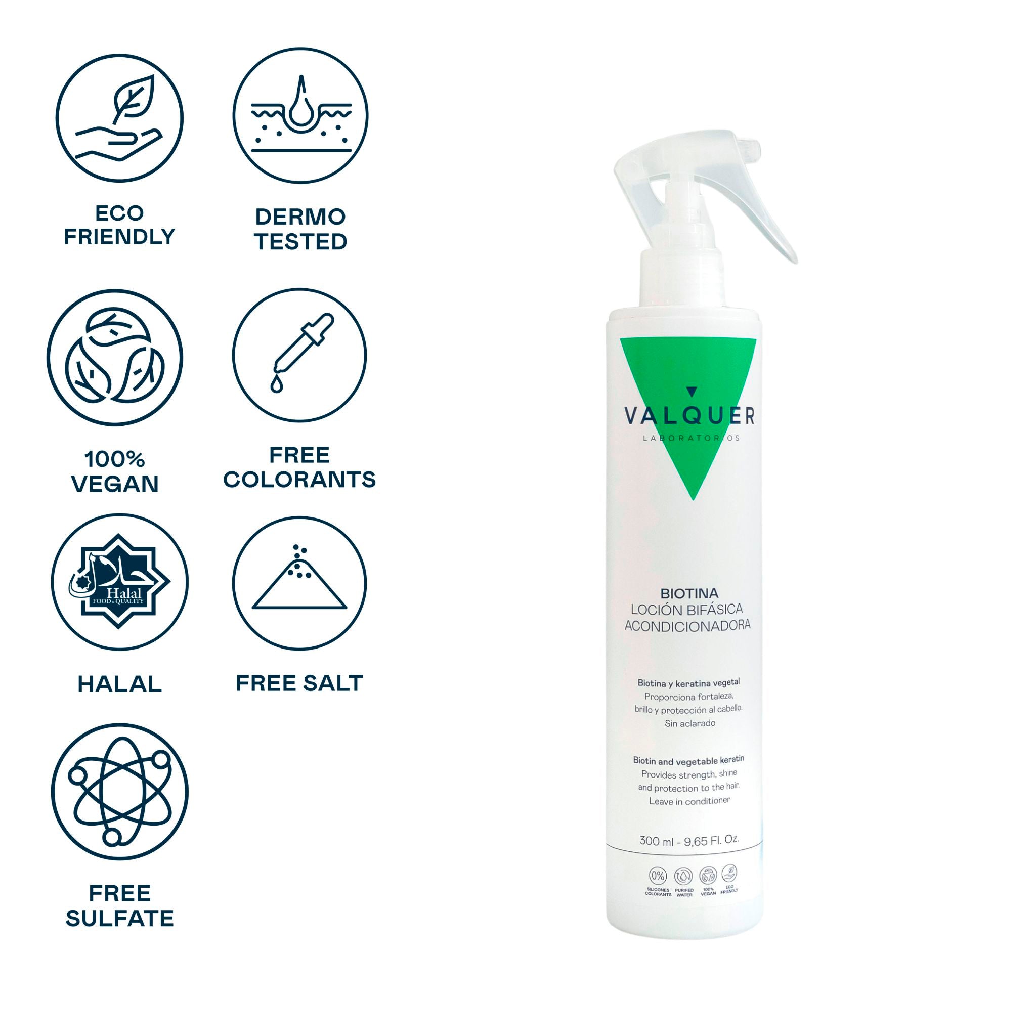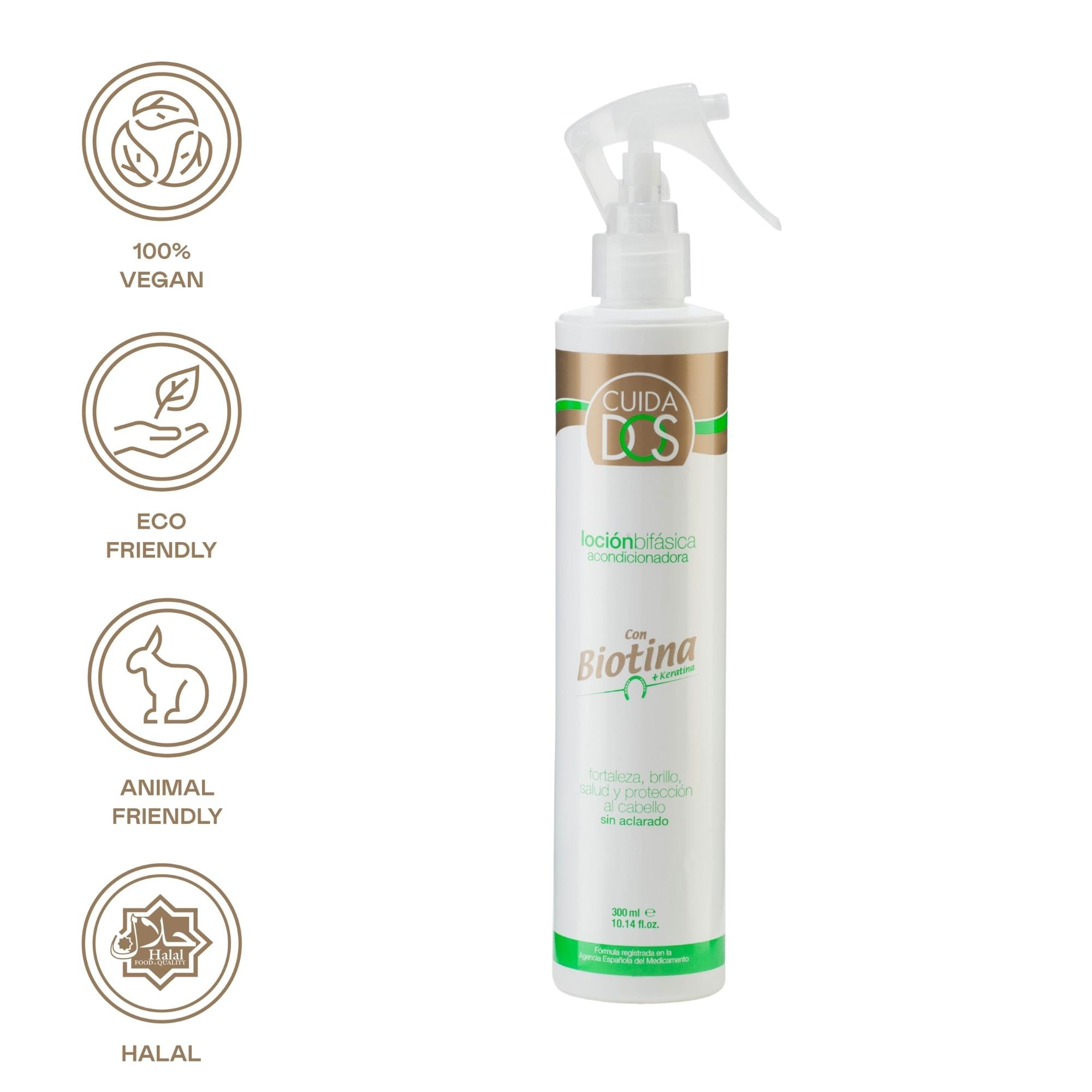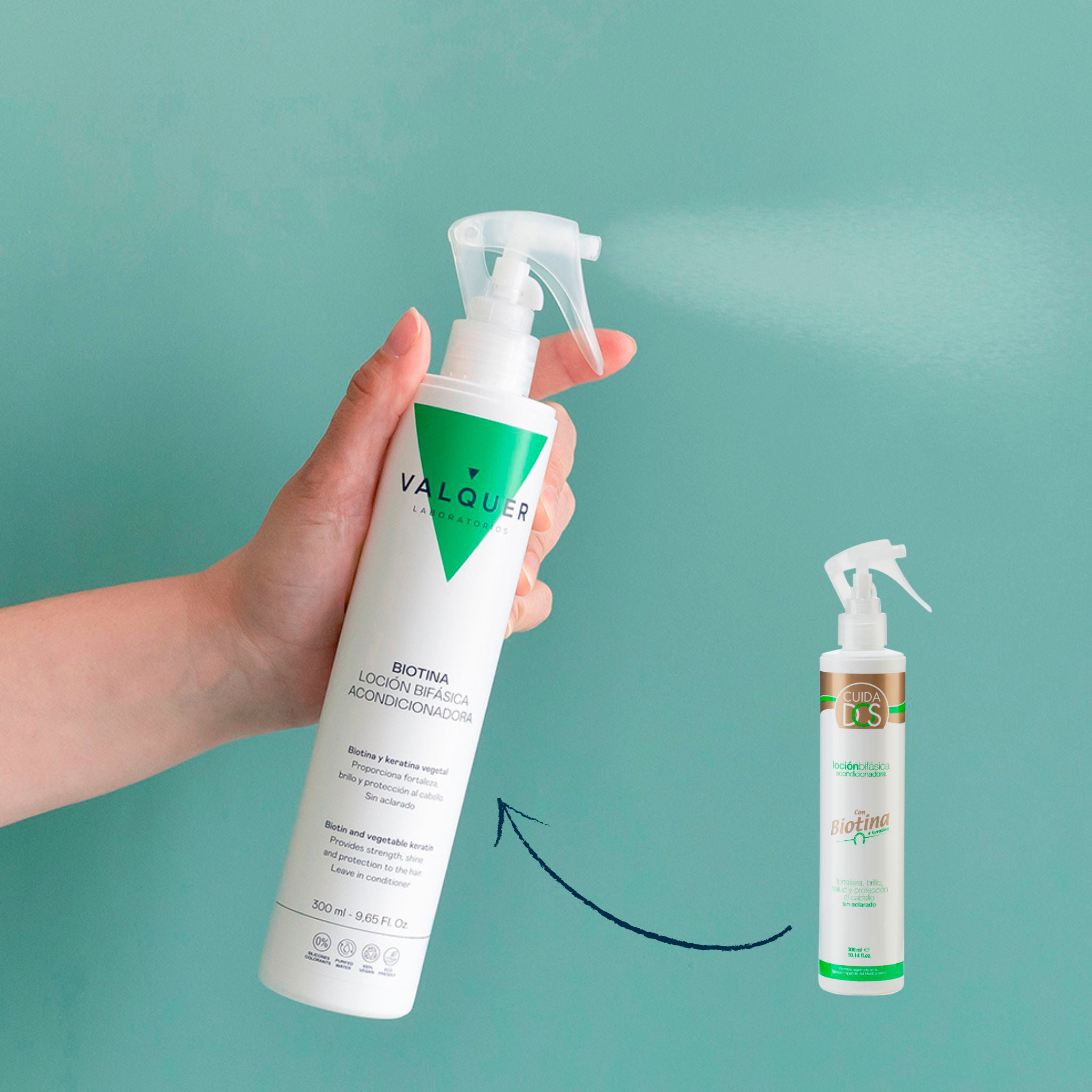 Loción bifásica capilar acondicionadora formulada con Biotina y Keratina, específico para cabellos desvitalizados y sin fuerza.