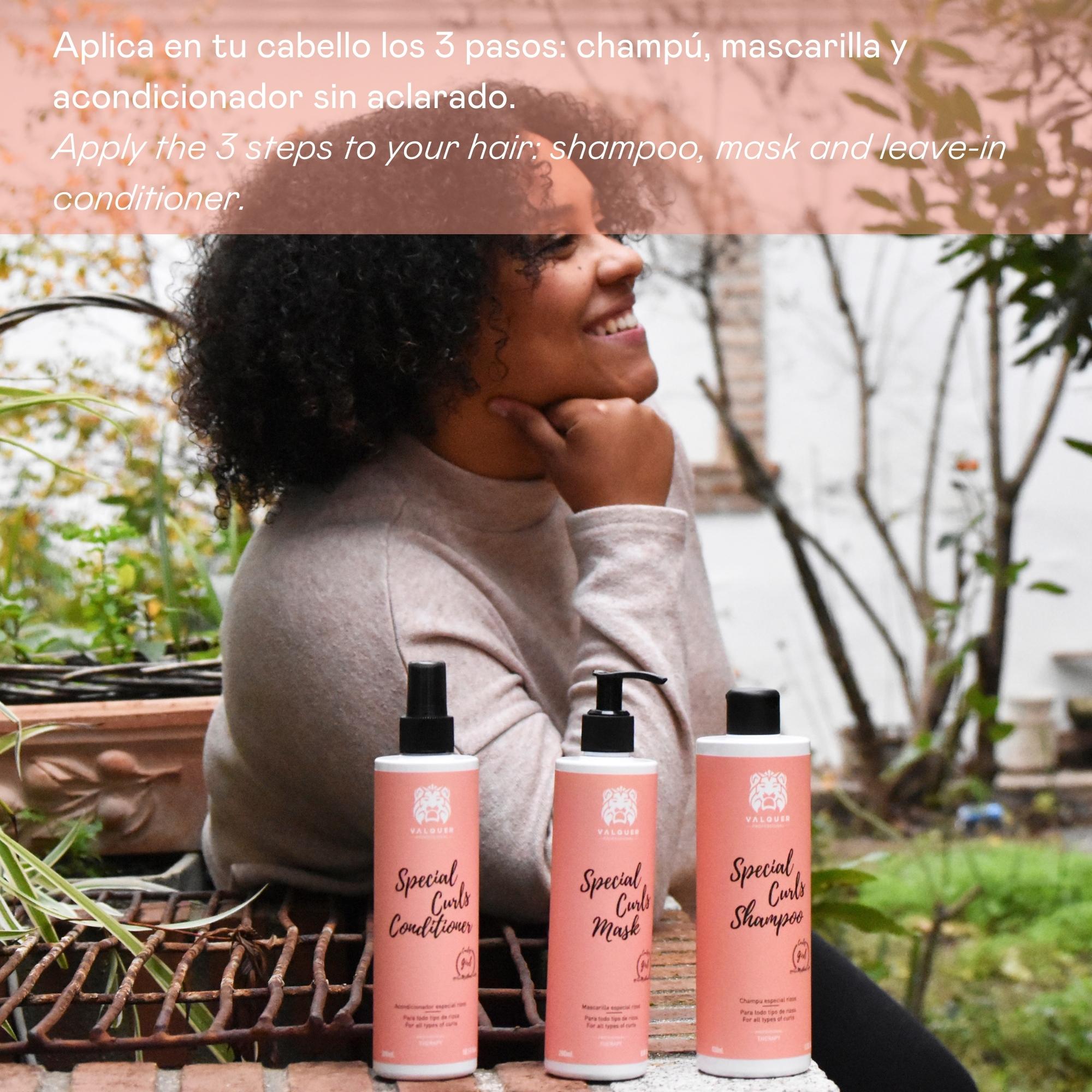 Mascarilla método curly girl, especial cabellos rizados.. Mascarilla desarrollada para cabellos rizados y basada en el método Curly; perteneciente a la gama capilar de productos para el método curly. Los productos de esta gama se caracterizan por no contener sulfatos, siliconas, parabenos, ceras, aceites minerales y alcoholes secantes. Todos ellos, ingredientes prohibidos en el método curly.. Apta para Método Curly. El objetivo del método es proporcionar y mantener la máxima hidratación posible para que el cabello rizado pierda el frizz propio de este tipo de pelo y tenga unos rizos definidos de manera natural.. Es una innovadora mascarilla nutritiva que incorpora un activo natural derivado del maíz que perfecciona y define el rizo, e hidrata el cabello evitando el encrespamiento.. Ingredientes naturales. Con hasta 96% de los ingredientes de origen natural.. Contiene ingredientes beneficiosos para el cabello rizado como son:. Activo 100% natural derivado del maíz, que mejora la retención del rizo, controla el encrespamiento y mejora la resistencia a la humedad.. Así como el Phytokeratin, que es un extracto compuesto por aminoácidos libres de origen vegetal (maíz, trigo y soja), que aumenta los aminoácidos libres presentes en el cabello. Estos juegan un papel importante, ya que ayudan a mantenerlo húmedo y flexible, al tiempo que proporcionan brillo y vitalidad al cabello.. Además contiene una mezcla elixir de aceites y mantecas: manteca de cacao y mango y aceite de oliva, almendra, aguacate, soja y algodón; esta combinación mejora la suavidad del cabello y su resistencia; protege su estructura, aumenta la fuerza del cabello, reduce y controla el volumen evitando el encrespamiento y ayuda a que se pueda peinar mucho mejor.. Para que el tratamiento sea efectivo, además del uso de la mascarilla de método curly se recomienda utilizar toda la línea: champú, acondicionador, serum y activador de rizos.. La mascarilla la pueden utilizar también los niños ya que ayudan a definir el rizo natural, sin modificar la estructura del cabello.