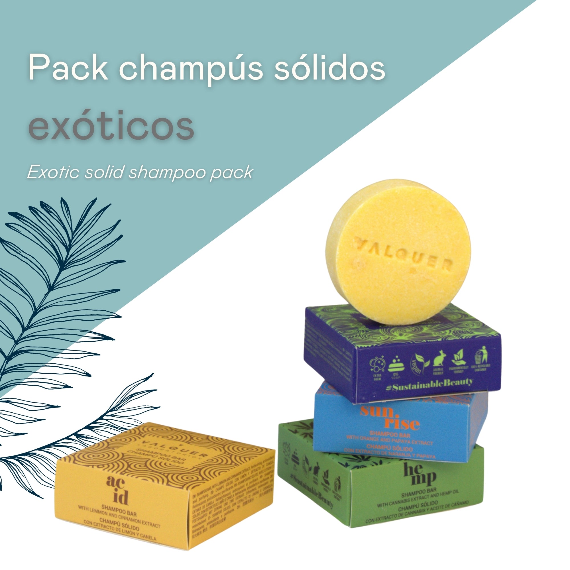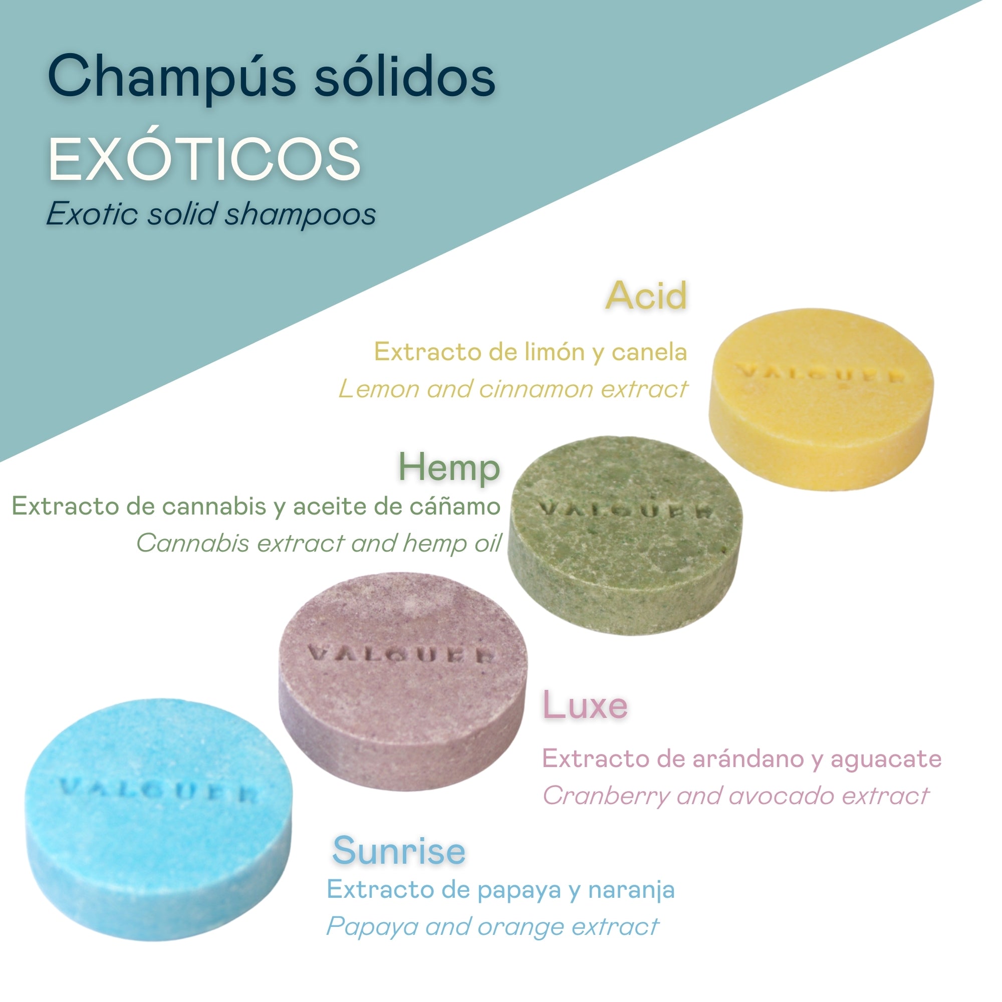 Pack 4 champús sólidos exóticos: Acid, Luxe, Sunrise y Hemp