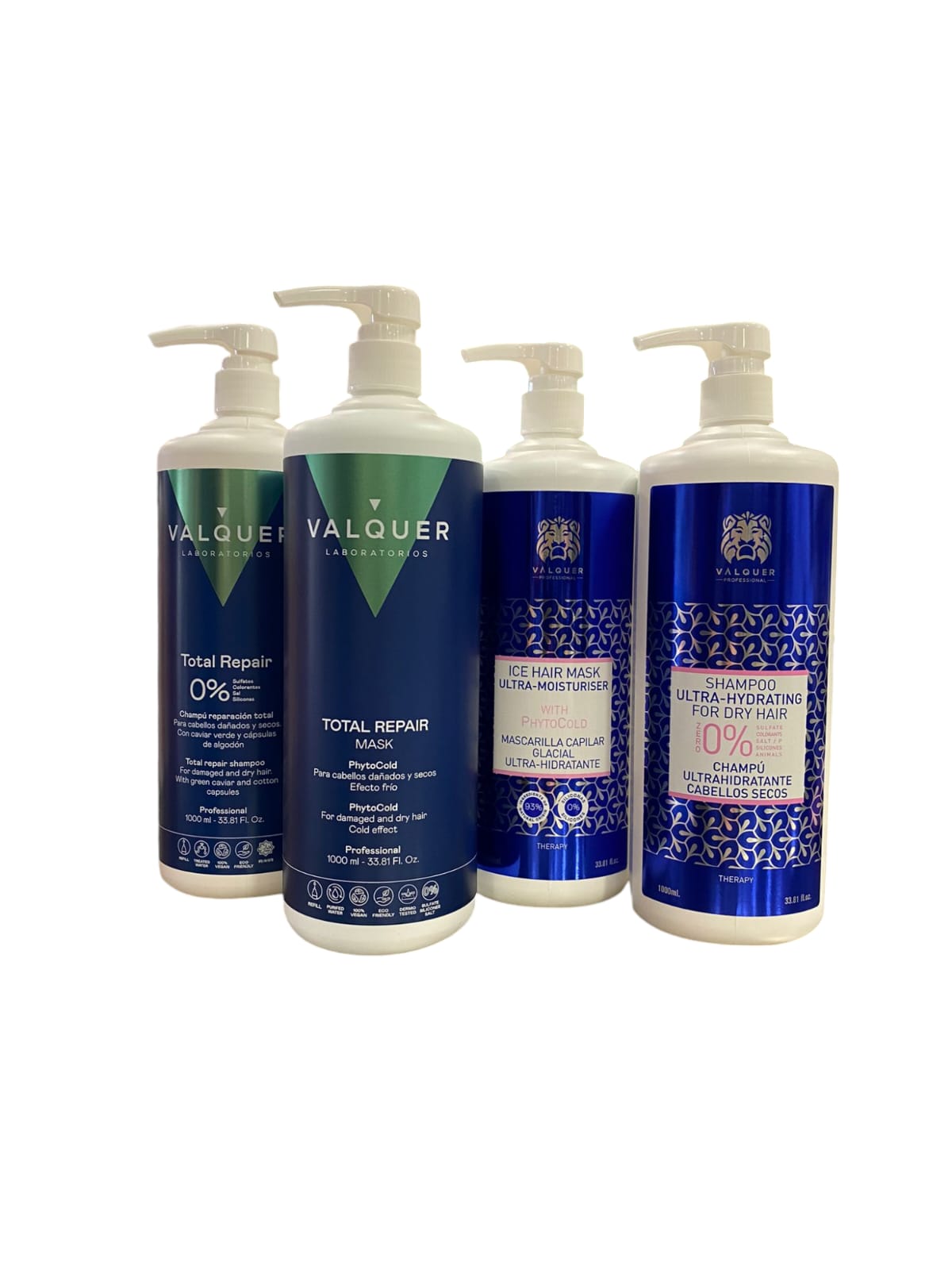 Valquer Packs reparador 1000 ml + Packs ultrahidratante 1000 ml 2 champú + 2 mascarillas