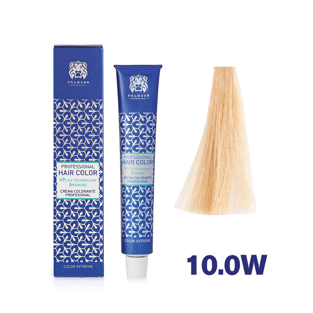 Tinte 10.0W Rubio Platino Cálido recomendado para el uso por profesionales de peluquería.